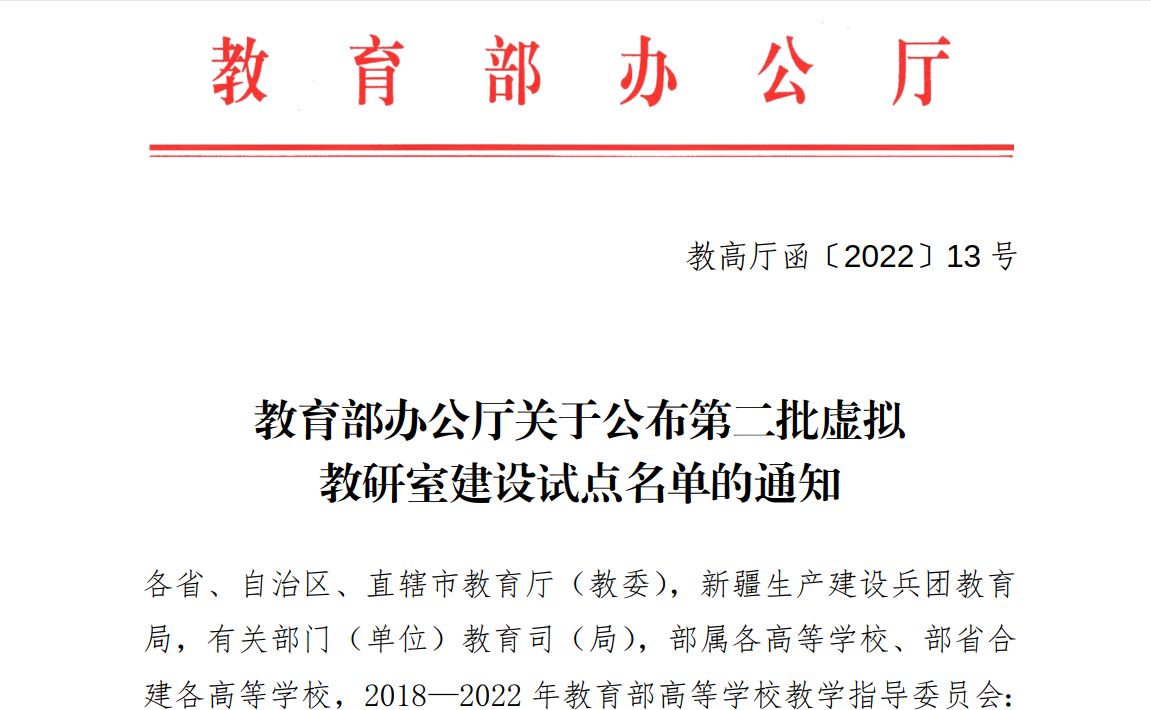 虚拟教研室是信息化时代新型基层教学组织建设的重要探索,以立德树人为根本任务,以提高人才培养能力为核心,以现代信息技术为依托,建强基层教学组织,引导教师回归教学、热爱教学、研究教学,为高等教育高质量发展提供有力支撑。