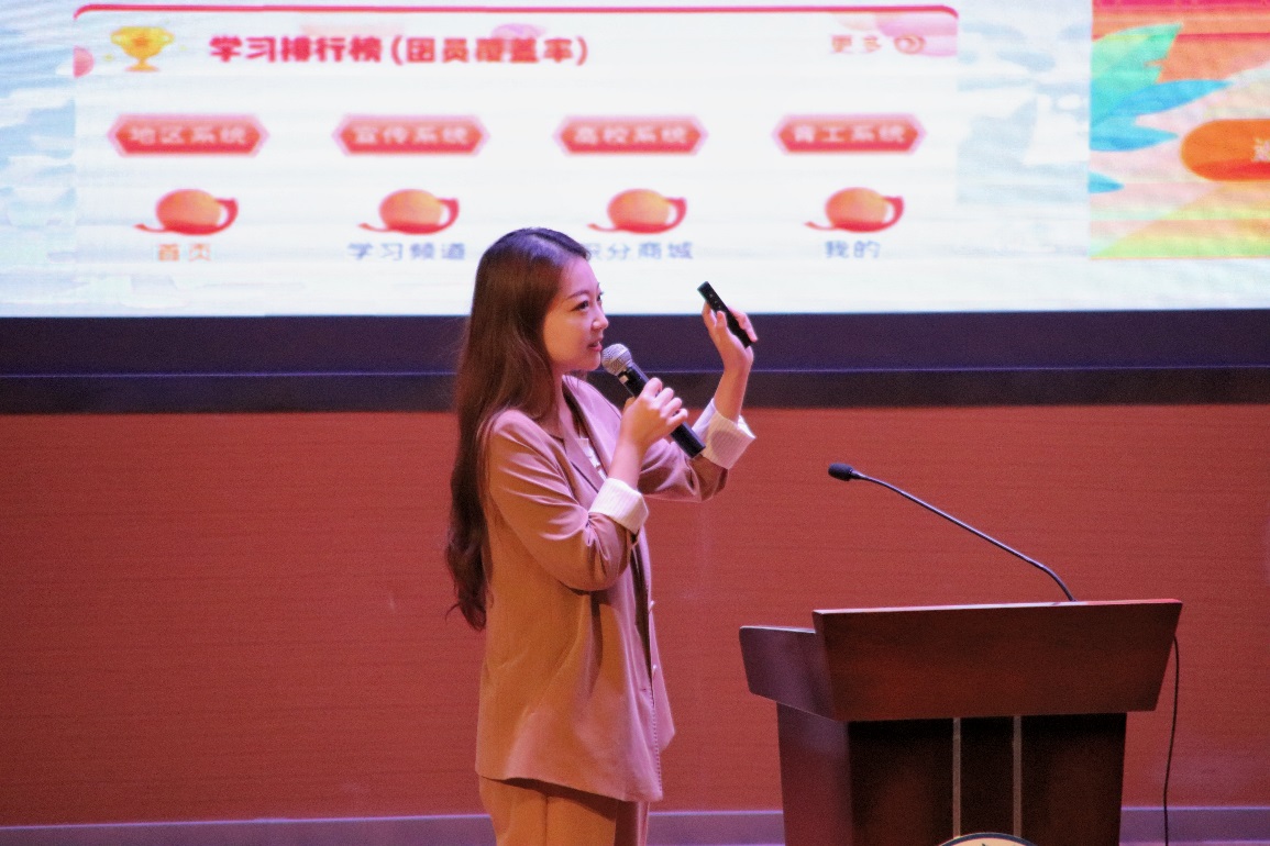 团总支书记刘一丹对团学事务工作进行了讲解。刘一丹分别详细解释了学院入团流程、志愿者服务及社会实践学分的获取条件和要求、青年大学习工作的安排,宣传了学院团学特色活动,并介绍了学院团总支及学生会的对应职能部门。
