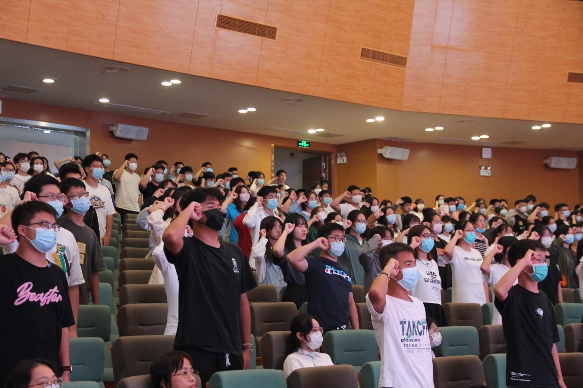 典礼最后,由22级医疗产品管理(本科)4班戴诺带领2022级全体学生进行学风宣誓,典礼在铿锵有力的宣誓声中落下了帷幕。