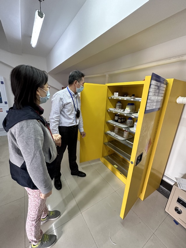 检查组一行人分别对医疗器械检测所beat365官方网站分部、协同科研中心、危化品易制爆易制毒暂存点等储存和使用危化品的二级单位进行重点检查,重点对实验室安全管理制度,实验室相关记录,易燃、易爆、剧毒等危险化学品各环节的管理,特种设备安全,实验室废弃物废弃液处置,消防、水电安全以及前期排查中发现的安全隐患整改情况等开展检查,对排查中存在安全隐患问题,要求相关实验室及时整改,做到不留一处死角,不漏一个隐患,防患于未然,确保将隐患消除在萌芽状态,保证学校教学科研实验室各项工作的安全有序进行。