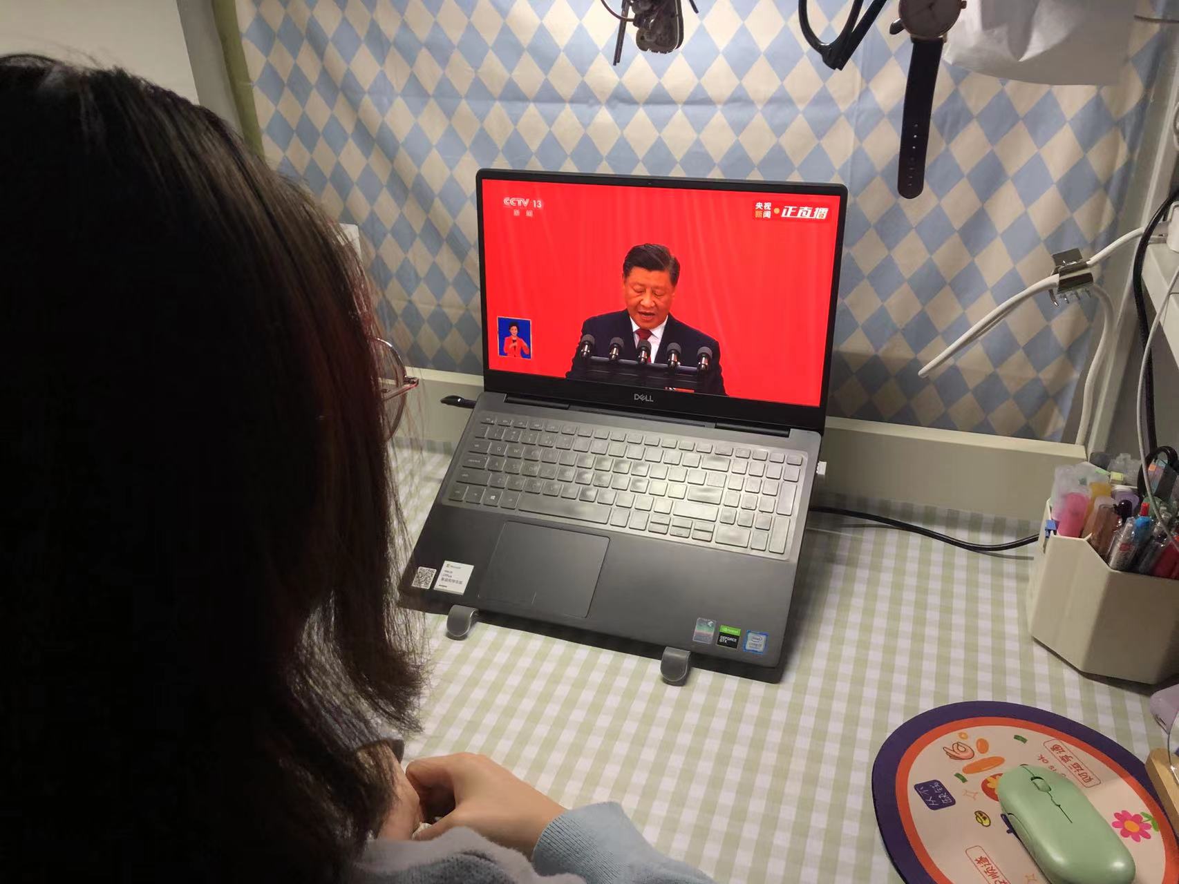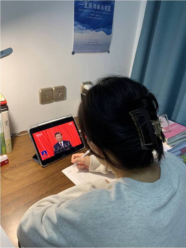 学生辅导员李茜教师讲到,“今日上午,我认真聆听了习近平总书记代表十九届中央委员会向大会作的报告,跟着总书记一起回顾了过去五年的工作和新时代十年的伟大变革。在党的坚强和英明领导下,坚定不移走社会主义道路,全国人民接续奋斗,克服重重困难,取得了历史性胜利,开辟了马克思主义时代化新境界。新时代新征程新使命,习近平总书记再次提到,青年强则国家强,要做青年工作的热心人、青年群众的引路人。近三年疫情形势的不稳定,也给青年大学生的成长带来了复杂挑战。作为一名行走在学生工作一线的辅导员,要积极研究新问题,不断向教育型辅导员转型,加强思想政治教育,坚持厚爱与严管相结合,关照和启发学生。乘风破浪,行稳致远,干好辅导员事业,培养更多有理想、敢担当、能吃苦,肯奋斗的好青年。”