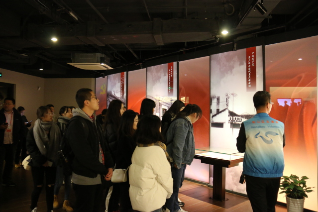 活动当天,正值寒潮来袭,室外温度接近冰点,但恶劣的气候并没有影响师生们的参观热情,他们从学校出发来到位于虹口区四川北路公园内的中共四大纪念馆。进入馆内,师生一行跟随纪念馆讲解员来到序厅,首先观看了一部3分钟的短片,看完短片大家了解了中共四大在党的发展历程中所起到的重要作用。如果说1921年中共一大的召开,见证了中国共产党的诞生,那么1925年中共四大的召开,则见证了中国共产党的发展和壮大。