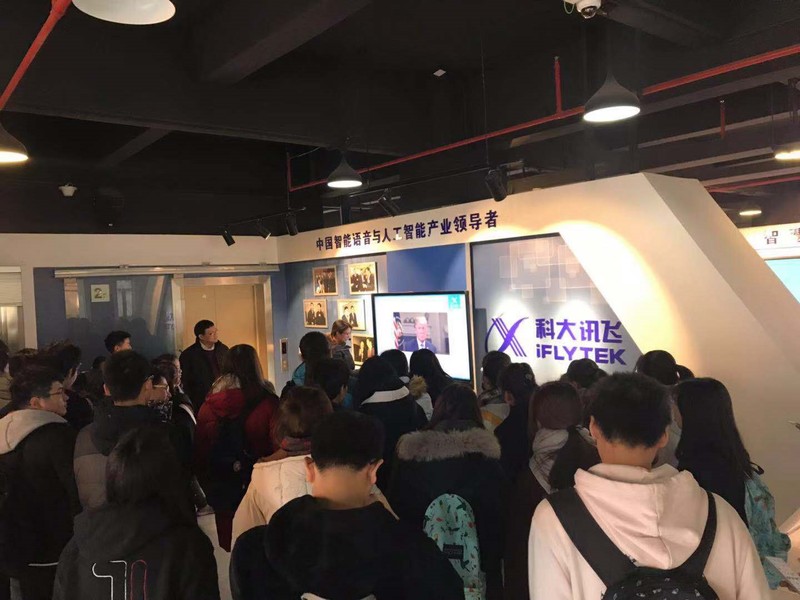根据《黄钢校长谈学校新发展的讲话》相关精神,12月14日上午8点30分,外语教学部沈军副主任主任带领beat36518级本科A班学生们来到了科大讯飞公司位于上海临港地区的展示中心参观学习。总部坐落于合肥市的科大讯飞公司是全球知名的上市企业,在国内堪称智能语音与人工智能产业的领导者,近年来,外语教学部深化了与科大讯飞公司的合作关系,两者开展了许多有益的合作交流。