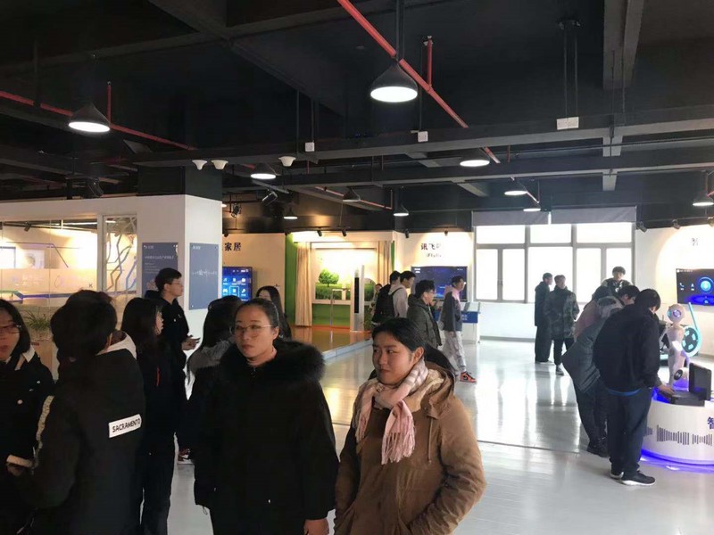 一抵达科大讯飞的展示中心,高科技的气息迎面而来。展示中心的讲解员依次向同学们展示了科大讯飞最新的科研成果,其中,令同学们印象最深的是感知智能技术,该项技术通过计算机对人类视觉、听觉等感知能力进行模拟研究,使各种机器设备具备能听会说、能看会认的能力。据了解,该项技术曾在十九大会议中公开展示,这足以体现科大讯飞在科技领域的全球影响力。除此之外,科大讯飞还向我们展示了有关教育评测、知识服务、机器翻译、图像识别、多语种语言处理等方面的技术,在展演过程中,同学们不时发出阵阵惊叹。同学们从声控的台灯,语音控制的行车仪,到人工智能的客服,高科技的产品让同学们目不暇接。作为中国智能语音与人工智能产业领导者,科大讯飞在语音合成、语音识别、口语评测、自然语言处理等多项技术上已经拥有国际领先的成果。在这里,同学们与智能语音机器人互动,使用讯飞输入法进行同声翻译,与高科技人工智能设备做了一次亲密接触。