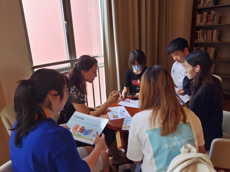 徐静老师与学生们讨论准备科普宣讲志愿活动