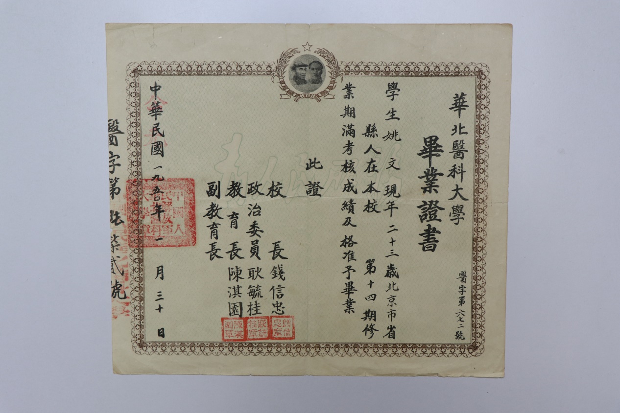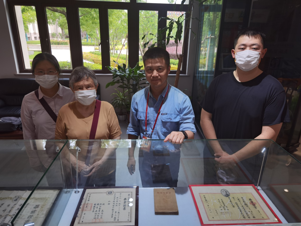 近日图书馆迎来几位特殊的客人,事情还要从一个电话说起。一天下午,图书馆综合办公室的电话铃突然响了,电话那头一位北京口音的小伙子礼貌的咨询道:“请问咱们图书馆的现代医学教育博物馆能接待校外人员参观吗?我在网上看到博物馆展出的一张毕业证书和我的家人有关,想过来看一看,不知是否方便。”图书馆工作人员仔细询问了具体信息,图文信息中心主任彭骏十分重视并安排时间亲自接待来访人员。