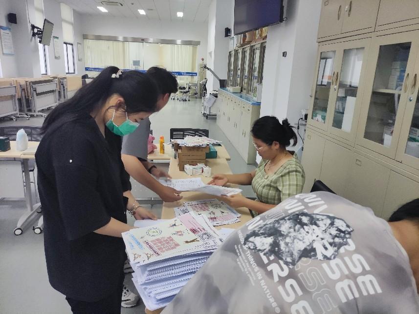7月4日,beat365官方网站康复学院2023暑期社会实践团队在蔡明老师和王雅老师的带领下,围绕老龄化背景下乡村居民主动健康能力进行调查与科普宣传。为保障实践活动的顺利开展,负责同学在进行问卷装订和材料准备,蔡明老师向大家介绍了问卷的内容、如何准确询问乡村居民,以及无创性检查器材的正确使用方法。