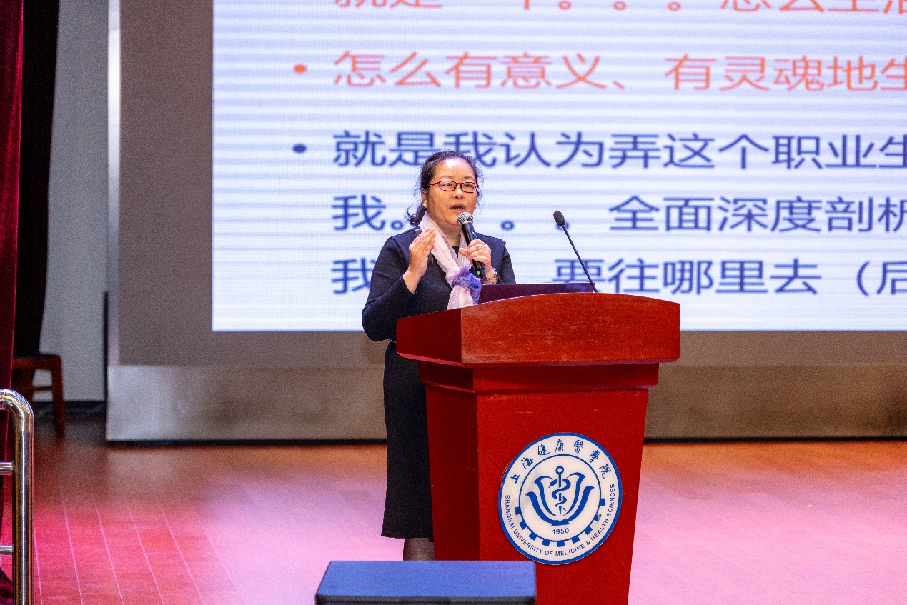 仪式结束后,上海交通大学医学院儿科学院院长陈怡绮以“了不起的儿科医生”为主题给同学们带来了一堂精彩的医学生职业生涯规划课。陈老师从马斯洛的需求层次理论出发,围绕“德商、逆商、情商、智商”四个维度,以学生喜闻乐见的故事和案例为切入点,为同学们讲解自身职业能力、人际交往技巧的提升方法和路径。同学们经过白袍仪式的洗礼,对本次职业生涯规划课有了更深入的理解和体会。