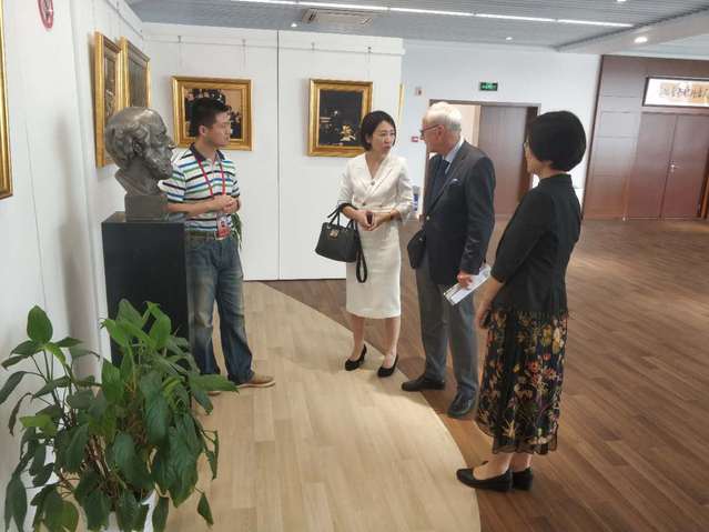 彭骏首先就图书馆空间分布、办馆理念等作简要介绍,指出图书馆围绕学校提出的“人文+实践”相结合的双螺旋培养模式,通过空间建设和各类活动开展,积极营造良好的医学人文氛围,助力提升广大医学生人文素养。之后,在彭骏带领下,Christoph Josten一行来到南苑图书馆五楼,参观了医学人文油画展。Christoph Josten对一幅幅精美的油画以及油画背后的故事很有兴趣,他一边观赏一边与大家讨论交流。Christoph Josten表示,通过油画来讲述医学发展历史,传播医学人文精神,这种方式很直观、有趣,也非常有效,值得借鉴。最后,Christoph Josten一行还参观了图书馆报告厅、藏书区和西文室等区域。(校图书馆)