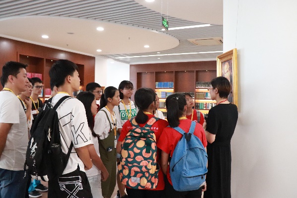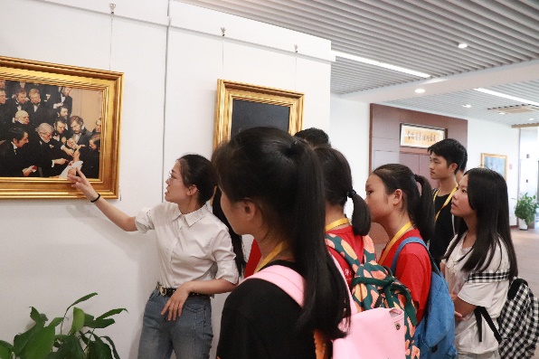 他们在学长志愿者的带领下,参观了南苑图书馆五楼的油画展,图书馆丁老师、来自护管学院的学长们为大家导览了近三十余幅寓意深远的充满“医学、从医者、患者相互间千丝万缕关系”的油画。同学们认真地倾听着,不时提出自己的疑问,向学长们和老师寻求更多关于医学的解答。他们沐浴在对未知事物的求知中、被医学人文情怀震撼中,看到了医者的人格魅力体现在治病救人的画面中、崇高而无私的奉献精神中。