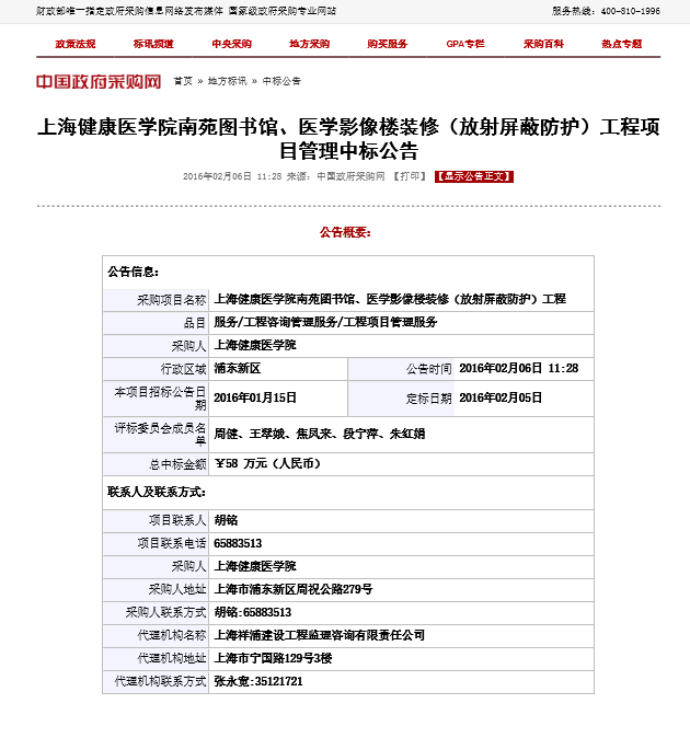 beat365官方网站南苑图书馆、医学影像楼装修(放射屏蔽防护)工程项目管理中标公告