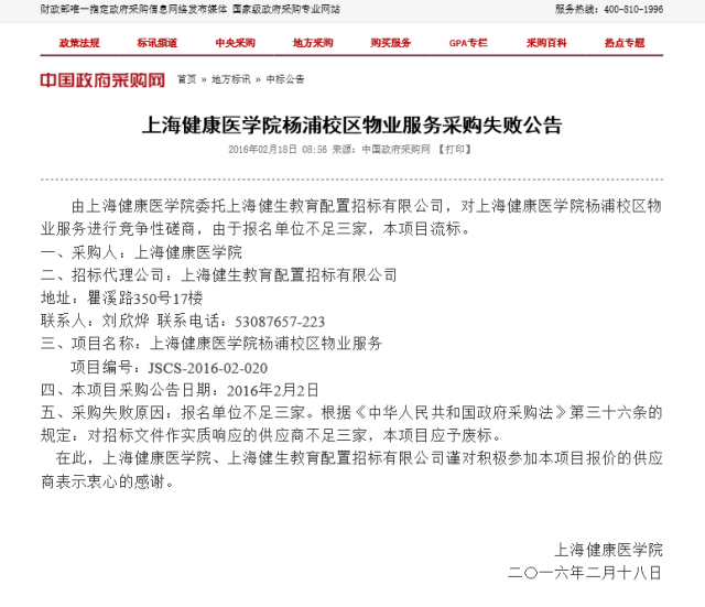beat365官方网站杨浦校区物业服务采购失败公告