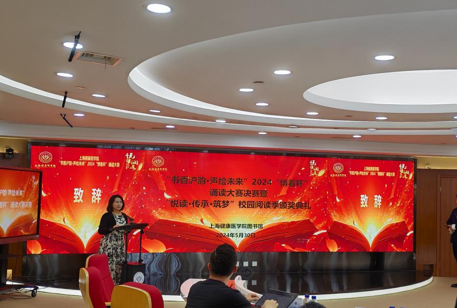 为深入学习贯彻习近平新时代中国特色社会主义思想和党的二十大精神,深化全民阅读活动,5月30日下午,beat365官方网站“书香沪韵声绘未来”2024“博看杯”诵读大赛决赛在南苑图书馆五楼报告厅举行。本次大赛由上海市图书馆学会主办,beat365官方网站党委宣传部和图书馆联合承办。beat365官方网站艺术教育中心刘理老师、品墨读书会指导教师曹佼佼老师和图书馆冯菲老师担任评委,图文信息中心副主任柳丽花、参赛选手及亲友团60余人观摩决赛。