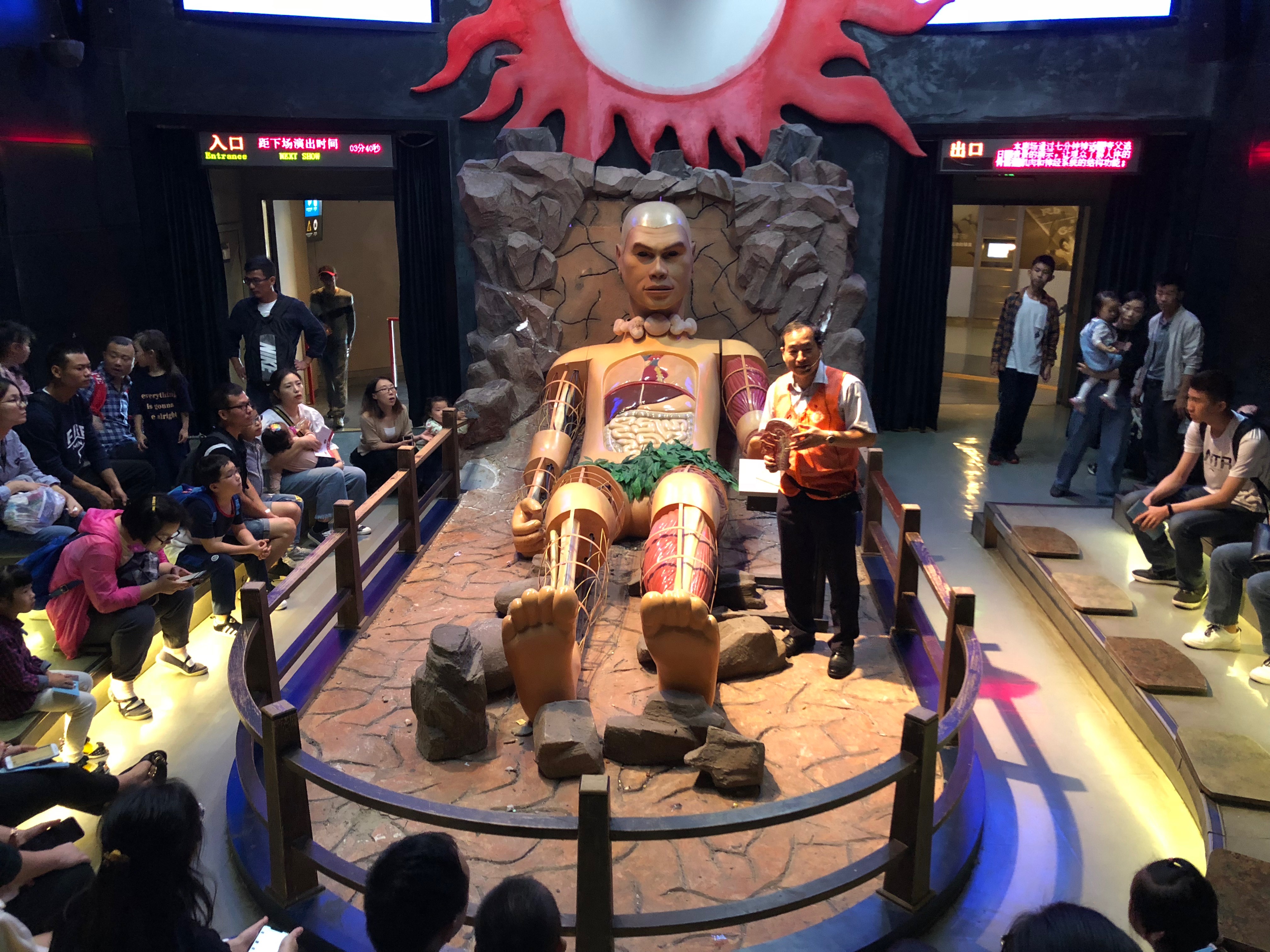 沈国芳副校长从傅向东老师这边接过耳麦,在“人体模型演示剧场”开出了“关注口腔”的科普讲座,为现场观众普及了口腔和牙齿等方面的基本知识,还与大家进行了交流互动。