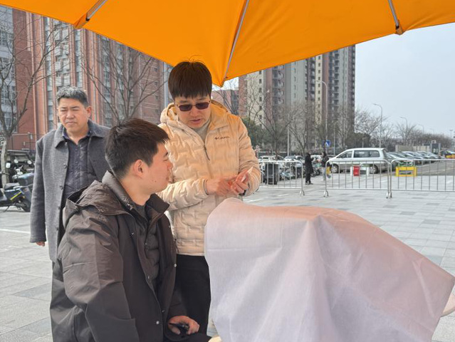 活动开场,四位眼视光技术专业的同学在陆俊杰老师的指导下,迅速且有序地为居民们开展视力检测服务。他们熟练操作电脑验光仪,为每一位居民进行细致检查,并详细记录数据。遇到年龄较大或视力问题较为复杂的居民,陆老师耐心沟通,确保检测结果精准无误。
