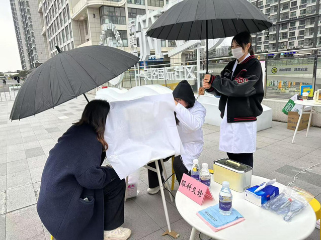 在检测间隙,老师和同学们还专门设置了互动咨询区域,为居民们一对一解答眼健康方面的疑问。有的居民询问如何缓解长时间使用电子设备导致的眼疲劳,有的关心老年常见眼病的治疗方法,师生们均给予专业且通俗易懂的回答,同时还为居民们示范正确的眼保健操动作以及日常护眼小妙招。