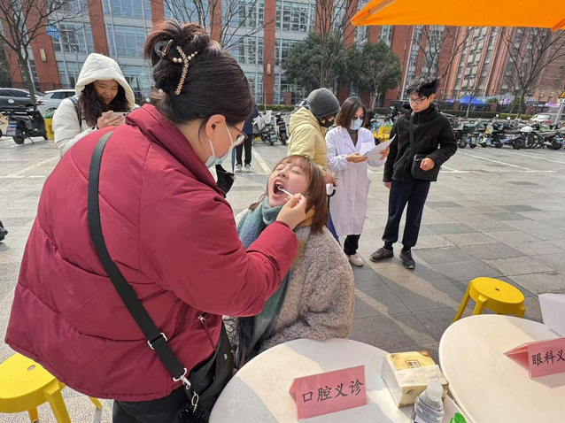 口腔医学技术专业的尚书老师充分发挥专长,向居民普及口腔保健知识,详细介绍正确的刷牙方法、龋齿预防等内容,并为居民们进行口腔初步检查。尚书老师专业又接地气的讲解,赢得了居民们的热烈欢迎与高度好评。
