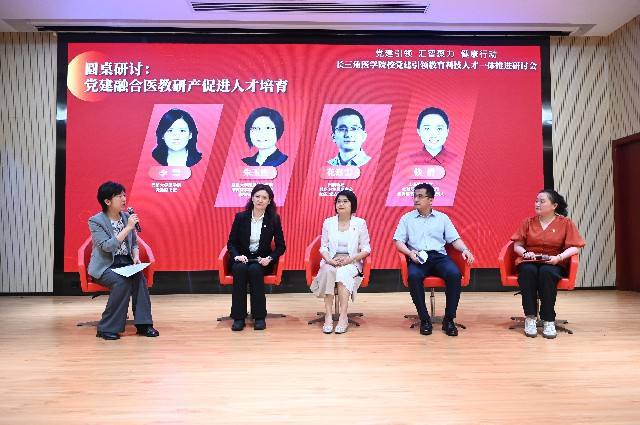 同济大学医学院党委副书记李慧,复旦大学附属华山医院康复医学科党支部书记、浦东院区副院长朱玉连,附属新场社区卫生服务中心主任、党支部副书记花迎雪,上海兰卫医学检验所股份有限公司党支部书记钱倩围绕党建融合医教研产促进人才培育,分别从自身工作实践回答了党建聚力如何培育复合型医学人才;如何做好双带头人,把党建深度融入业务中;社区党建如何实现“小站点撬动大健康”;企业党建如何接续培养医学创新人才等问题。