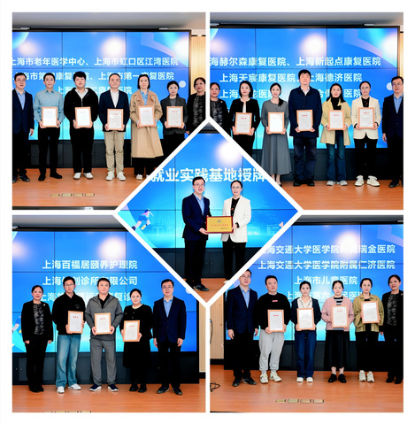 为了感谢各协同单位对学院人才培养工作的长期支持,王红与郭琪共同为各单位颁发感谢状。一份份感谢状,见证了学院与各单位在协同育人中结下的深厚情谊与合作成果。会上,为了进一步拓展学生的临床实践与就业渠道,郭琪还为上海德济医院进行“大学生就业实践基地”授牌。