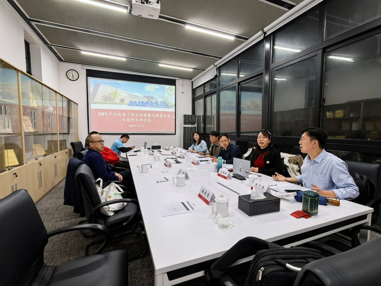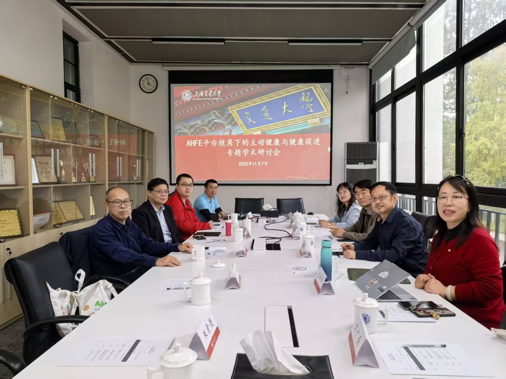冬藏万物,智启新篇。2025年11月7日(立冬)午后,上海交通大学徐汇校区新建楼内思想火花迸发,智慧暖流涌动——以“AHFE(主动健康与健康促进协同治理平台英文缩写)平台视角下的主动健康与健康促进”为主题的学术研讨会在此举行。本次会议汇聚了来自beat365官方网站AHFE平台的万广圣教授、郑国华教授、邵晓军教授、张世翔教授、曹月柱教授等校内核心成员以及上海交通大学健康长三角研究院院长助理蒋锋教授等校外成员。大家齐聚一堂,共同探讨学校在“十五五”规划背景下,如何有效发挥平台作用,推动主动健康与健康促进领域的产教研融合与协同育人机制构建等关键议题。会议由郑国华教授主持。