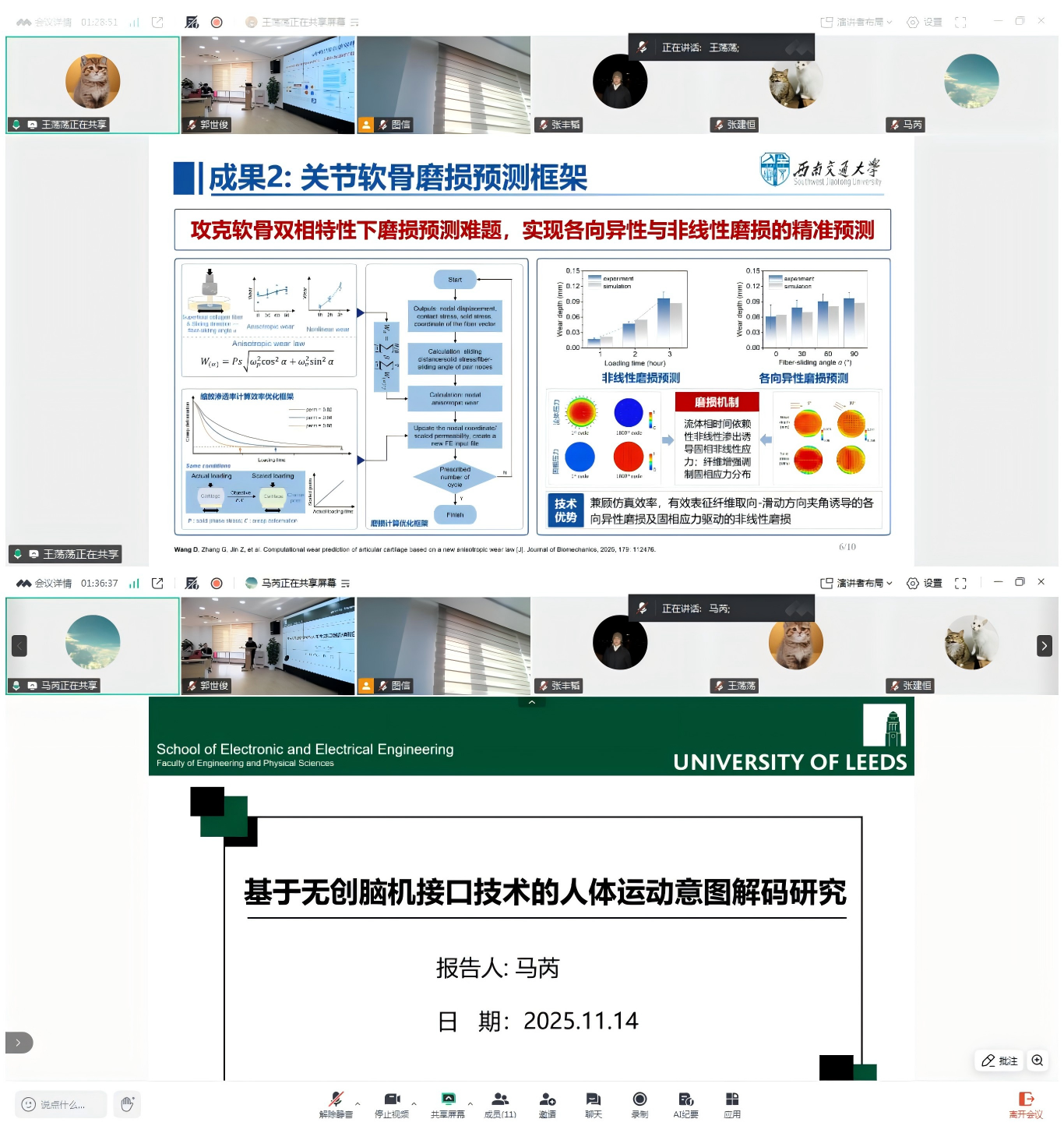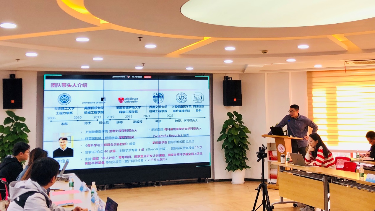 周浦医院李俊言教授作主旨报告,介绍了研究团队面向骨科与康复领域的生物力学、摩擦学、机器人、AI交叉研究最新成果。