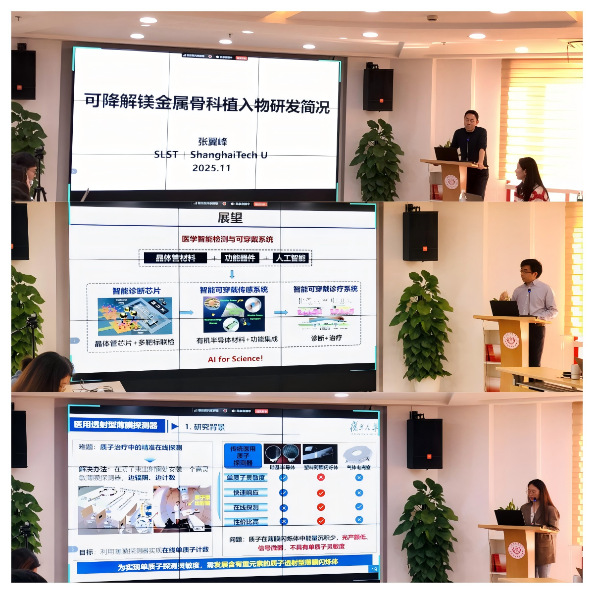 在学术交流环节,来自复旦大学、上海科技大学、西南交通大学、英国利兹大学等国内外高水平院校的青年学者分别就骨科基础医学研究、晶体管生物电子器件、人体关节摩擦学与生物力学、基于无创脑机接口技术的人体运动意图解码、放射治疗新方法及探测技术等方面的最新研究作学术报告。