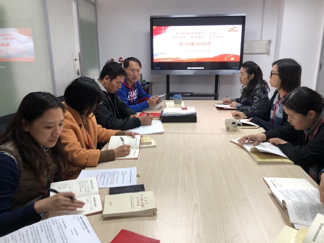 2019年11月21日12:30,医学技术学院教工第二党支部在4517开展“党员廉洁自律”集中学习。本次学习由支部纪检委员王力强领学、张静怡作为主要发言人。
