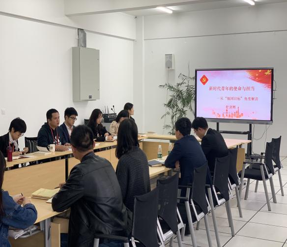 随后,学生第二党支部书记王海峰老师提出在学习新时代强国战略的内容时要明确总目标和具体安排两个方面。新时代强国战略的总目标是建设社会主义现代化强国,王海峰老师从四个角度论述了建设社会主义现代化强国的重要性;党的十九大报告从经济建设、文化教育、国防和军队建设等方面对全面建设社会主义现代化强国进行了具体的部署和安排,新时代强国战略的具体安排是建设经济强国、文化教育强国、国防和军队强国。