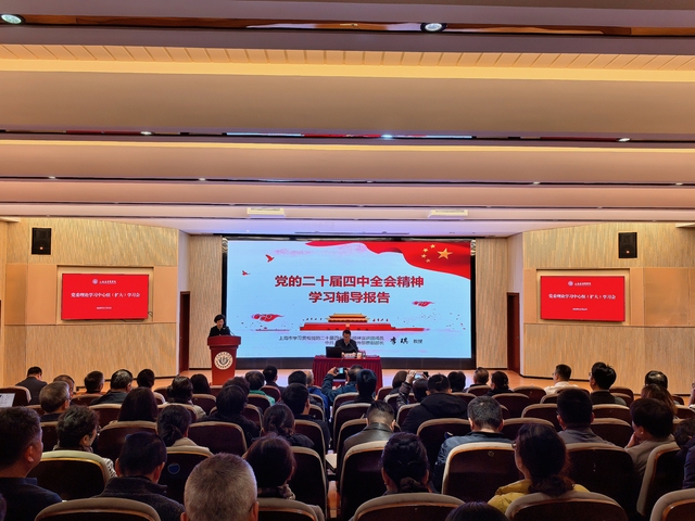 11月21日上午,校党委举行理论学习中心组(扩大)学习会。上海市学习贯彻党的二十届四中全会精神宣讲团成员、中共上海市委宣传部原副部长李琪教授应邀作党的二十届四中全会精神学习辅导报告。全体在校校领导、中层干部、挂职和跟岗锻炼干部、马院教师、辅导员、离退休党支部代表、师生理论宣讲团成员代表等近200人参加学习。会议由校党委副书记、副校长唐红梅主持。