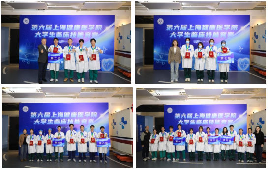 下午举行了颁奖仪式,最终附属奉贤区中心医院艾心、李定漩、盛曹一、金翊茗获特等奖;附属周浦医院张嘉欣、吴偲茵、董佳怡、施雨欣获一等奖;附属嘉定区中心医院李亿城、张漾、叶琳、王麒嫣,第六人民医院(临港院区)陶程浩、庄宇峰、顾赵杰、金思源获二等奖;附属周浦医院吴欣月、陆杨妤、陈硕、朱思敏,附属奉贤区中心医院陈伟杰、朱辰奕、王子瑜、陆佳颖,附属嘉定区中心医院吴苡菡、龙云峰、陈韩旭、吴亦轩获三等奖,另有个人单项奖6项、优秀指导教师1项以及优秀组织奖1项。