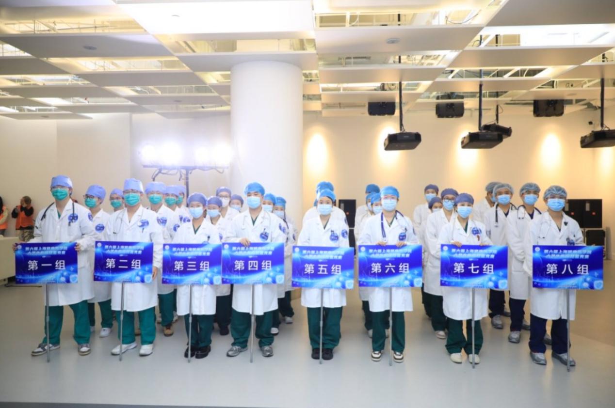 大赛参照全国大学生临床技能竞赛模式,全方位考察选手理论知识、临床技能、临床思维、沟通能力、人文关怀、团队合作、创新能力等各项技能,采取“多站式”、“赛道式”、综合急救以及理论抢答相结合的赛制,模拟临床情景进行。大赛由附属嘉定区中心医院朱堃教授担任裁判长,附属医院临床教师担任考官。