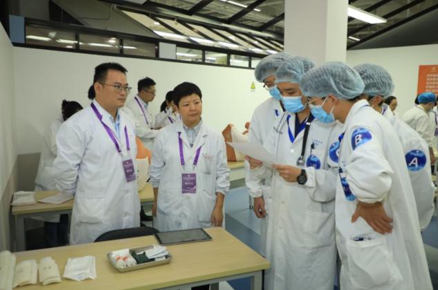 赛场上,32名参赛选手沉着冷静、操作流畅、合作默契,在规定的时间内顺利地完成了各项操作,展现了扎实的理论功底和过硬的临床技能,充分体现了各教学单位良好的临床带教水平。裁判员们严格按照比赛规程进行评分,确保比赛的公平、公正、公开。