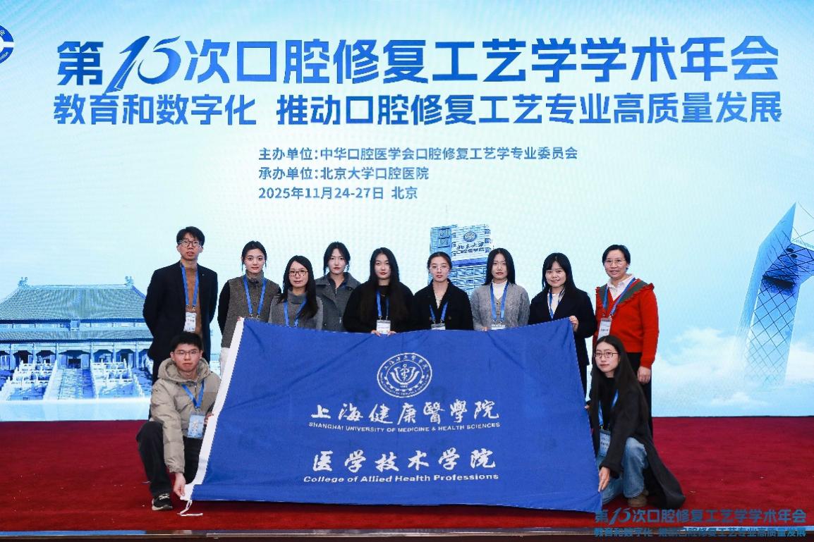 这是口腔医学技术专业师生团队连续第三年参加该学科国内最高级别会议,并有本科生壁报获评优秀。通过带领本科生参与投稿、聆听学术报告,并与行业专家面对面交流,有效提升了学生的学术能力、综合素养、专业视野与职业认同。