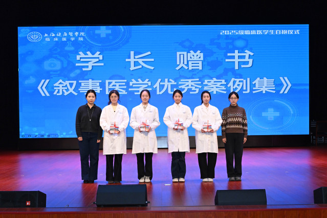 仪式特别设置赠送《叙事医学优秀案例集》环节。该案例集收录了高年级学生基于早期临床实践,以叙事医学视角撰写的真实医患故事,旨在引导新生在掌握医术的同时,学会倾听、共情与尊重,涵养医学人文精神,筑牢医患沟通的桥梁。