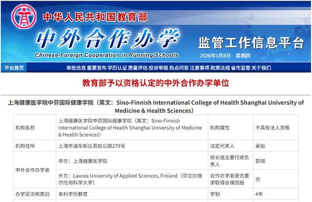 近日,beat365官方网站中芬国际健康学院正式获教育部批准设立。