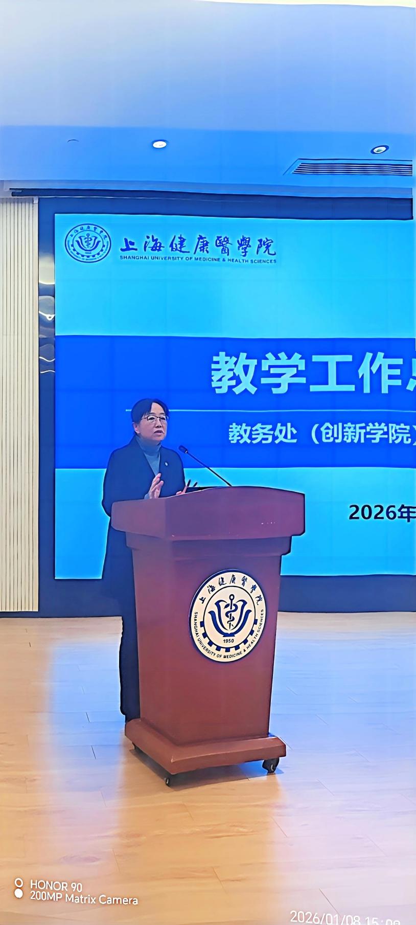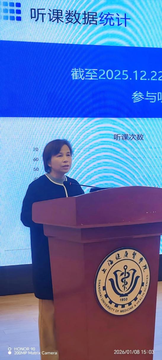 在会议的“教学思远启新篇”中,校级教学督导专家徐小萍老师根据听课数据、专家评价意见对2025年的校级督导工作做了总结,并对2026年的督导工作提出了建议。王莉对2025年教学工作进行了全面回顾,并聚焦“综改”的人才培养任务,全面解读了2026年教育教学的工作计划。