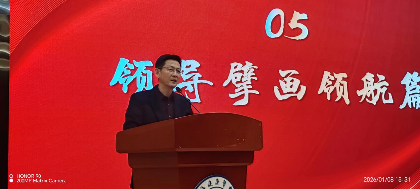 最后,汤磊向在教学一线、临床一线辛勤耕耘的各位老师在过去一年中的辛勤付出和对学校的大力支持,表示衷心的感谢和崇高的敬意。他指出,2026年是学校“十五五”规划从谋篇布局转入全面实施的开局之年,也是深化综合改革、全面提升人才培养质量的关键一年。他对学校教学工作做出了要求:一是要以人才培养改革为核心开展综改,要紧紧围绕四大重点发展领域(临床医学与医疗卫生服务、健康照护与管理、智能医药与医疗器械、主动健康与健康促进)开展供给侧结构性改革,提升人才培养的适配度,提升行业产业贡献度。二是要深化产教融合,要强化与医院及行业企业的协同合作,对人才培养方案进行“一年一更新、四年一大修”,确保各专业实践教学学时占比不低于50%,实现100%专业培养计划由校、院、企联合制定。要深化“早临床、早企业,多临床、多企业,反复临床、反复企业”和“序贯进阶、工学交替”人才培养模式改革。要切实开展“订单式”人才培养改革,并建立“需求—招生—培养—就业—监测”体系闭环,以就业为导向,实现人才培养质量与服务贡献双提升。三是要推进“AI+”建设。系统开展“AI+课程”“AI+专业”建设,开展AI赋能教师教学能力的专项培训,实现各专业“AI+”课程全覆盖,促进教学体系整体升级。最后,他强调,2026年是学校落实综改任务的第一年,要以钉钉子精神起好步,开好局。