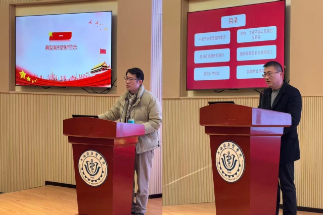 为筑牢思想防线、强化纪律意识,校纪委副书记、纪委办公室主任施奇作“招标采购领域专题警示教育”。他结合近年来校内招标采购领域查处的真实案例,深刻剖析廉政风险,以案明纪、以案释法,以身边事教育身边人,警示全体采购与资产管理人员须时刻严守规矩、坚守底线,切实筑牢廉政“防火墙”。审计处傅敏老师则从审计监督视角,对高校购买服务负面清单进行了精准解读,深刻剖析了立项与内控、合同与履约等方面的典型案例,明确了“职责不能外包、程序不能变通、责任不能转移”服务采购底线。