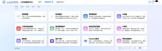 在应用管理方面,系统基于预制智能应用,基于助教、助学、助管及创意类场景进行精准分类,提供30+智能体应用,帮助师生快速收藏及选用符合自身教育需求的应用。