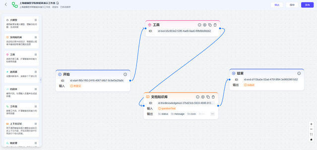 在工作流管理方面,利用系统自带的工具流组件,配置从开始到结束的工作流,可以让智能应用更精准地完成预定的思维任务。