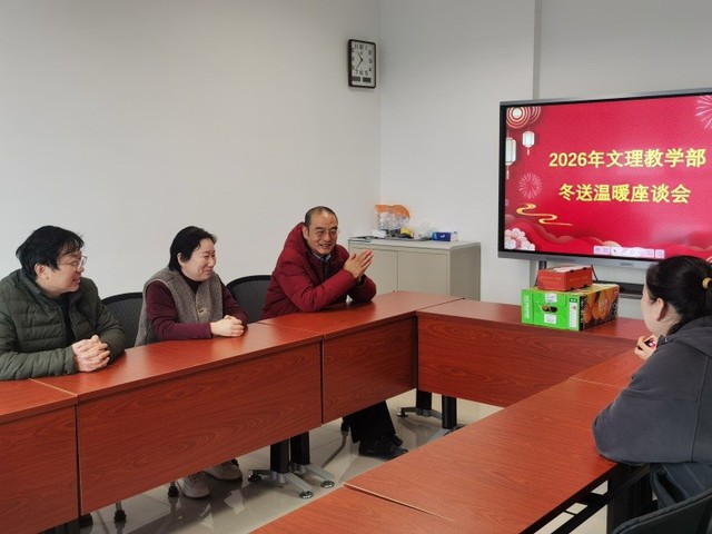 岁末寒冬送温暖,深情关怀暖人心。近日,文理教学部直属党支部书记陈娅俊、主任耿铭带队,教学部党政工领导班子成员共同参与,开展了2026年“冬送温暖”主题座谈会。活动聚焦长期坚守一线教学岗位、为教学部发展默默耕耘的3位优秀教师,将学校的殷切关怀、教学部的暖心问候与工会组织的真切关爱,精准传递到教职工心坎上。