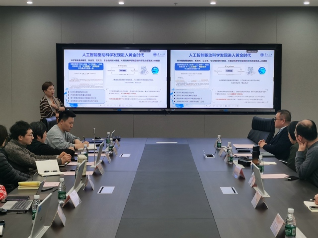 1月19日下午,药学院召开校级科研平台“数智赋能生物医药创新中心”建设推进会,会议特邀复旦大学人工智能创新与产业研究院副院长韩丽妹前来指导并作专题讲座。她以“全栈基础设施赋能科学智能发展”为题,重点介绍了复旦大学CFFF(Computing for the Future at Fudan)智算平台的建设理念、合作模式与最新成果,为药学院推动AI for Pharmacy的发展与转型提供了深刻见解。科技处副处长陆秀宏,药学院党总支书记徐一新、药学院副院长解伟、孟祥国,协同科研中心外聘专家赵健、中心PI邬海龙,药学院学科带头人刘晓丽及骨干教师参加会议。