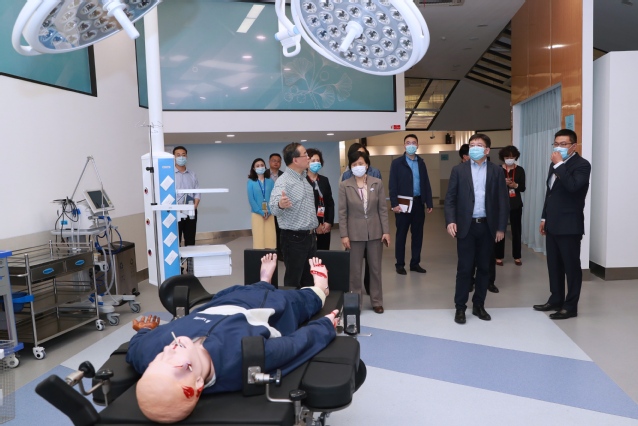 陈群一行首先参观了北苑基础医学互动实训中心、上海现代护理开放实训中心和健康互动实训中心,对学校实训中心建设和应用型人才培养给予充分肯定,随后在南苑图书馆五楼大厅,陈群副市长主持召开了调研会。
