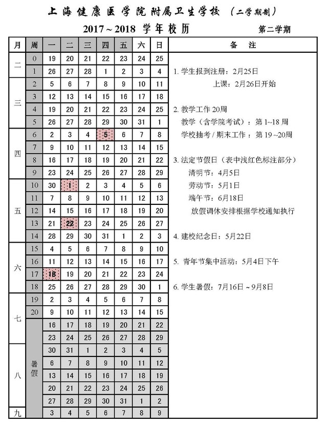 beat365官方网站附属卫生学校2017-2018学年校历