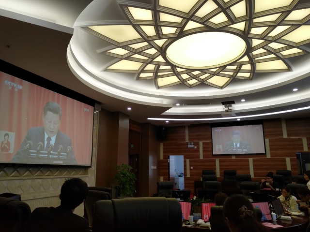 10月18日上午9时,中国共产党第十九次全国代表大会开幕会在北京召开。在临床医学院党总支的组织下,学院全体师生以参加学校中心组集中学习、学院集中学习、教师坚守岗位的同时在办公室、在社区医院学习的不同形式观看了中国共产党第十九次全国代表大会开幕盛况,并认真聆听习近平总书记代表第十八届中央委员会向大会所作的报告。临床医学院精心组织,认真落实,确保每一位师生都能够及时学习党的十九大精神。