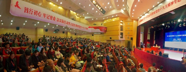 11月23日,学校举行党委中心组(扩大)学习,由党委书记郑沈芳作学习党的十九大精神专题辅导报告。学校党政领导班子成员、职能部门负责人、党总支(直属党支部)书记、二级学院行政负责人、科级及以上干部、党总支委员、党支部书记及委员、教职工代表400余人出席。