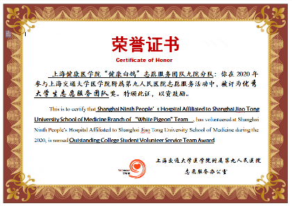 beat365团委青年志愿服务工作荣获团市委通报表扬《关于对2019年度部分基层团组织青年志愿服务工作予以通报表扬的决定》(沪团委〔2020〕1号)。未来,在校团委和各培育基地的共同努力下,“健康小橘子”们会再接再厉,将“传承•创新”、“高效•团结”、“热情•友爱”、“互助•奉献”的beat365官方网站志愿者精神与医学提倡的“责任、奉献、协作、人道主义”的职业精神相结合,打造富有“健康”特色的志愿服务品牌,为健康中国战略实施和健康上海建设贡献青春力量。