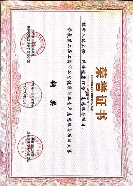 一直以来,各团队志愿者始终以饱满的热情,在实践中彰显beat365官方网站健康学子责任与担当,在每一个平凡的服务岗位中展现出健康学子的独特精神风貌。2020年,基础医学院《后疫情时代下的“我爱我”儿童生命教育科普志愿者服务项目》荣获上海市“奉献杯”第二届上海青年志愿服务项目大赛银奖;基础医学院互动学习与实训中心“探索人体奥秘,传播健康理念”团队荣获第二届上海市卫生健康行业青年志愿服务项目大赛总决赛铜奖。