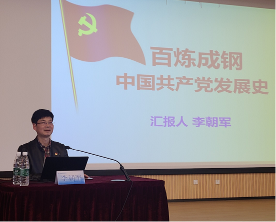 专题学习环节,复旦大学历史学博士李朝军受邀来作题为《百炼成钢:中国共产党发展史》的党史学习教育专题报告。李朝军主要从为什么要开展党史学习教育、党史学习的主线和本质两方面讲解了中国共产党波澜壮阔的革命过程,报告以丰富的史实和生动的事例带领大家深刻体会了党的事业创业之艰难,革命成果来之不易,深化了对中国共产党矢志践行初心使命、筚路蓝缕奠基立业和创造辉煌开辟未来一百年历史的认识,激发了学院师生继承和发扬中国共产党的红色革命精神。