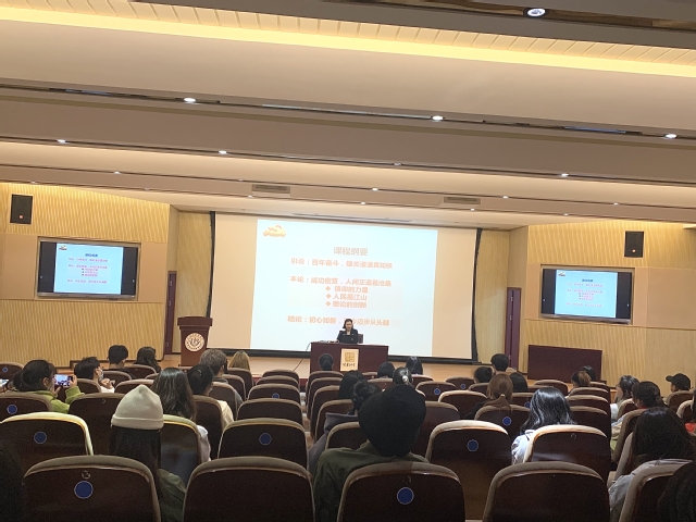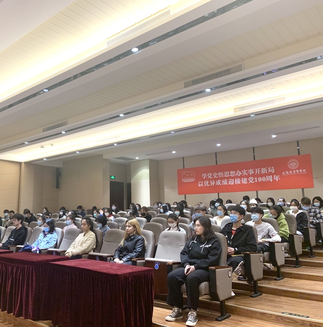 首先,刘书记以“学史明理、学史增信、学史崇德、学史力行”开篇,向同学们阐述了学习党史重要性和必要性。接着,刘书记从政治、经济、科技、民生、外交等五个方面介绍了我国的百年奋斗历程,以详细案例为证 :从亚投行的建立到成为全球第二大经济体,中国的经济在飞速的发展;从北斗导航的研发到“九章”计算机的研发,中国逐渐实现“上九天揽月,下五洋捉鳖”的图景。她提到,现在的成功来之不易,需要我们不断奋斗。